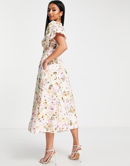 Forever New Petite Puff Sleeve Midi Dress In Rose Floral Asos