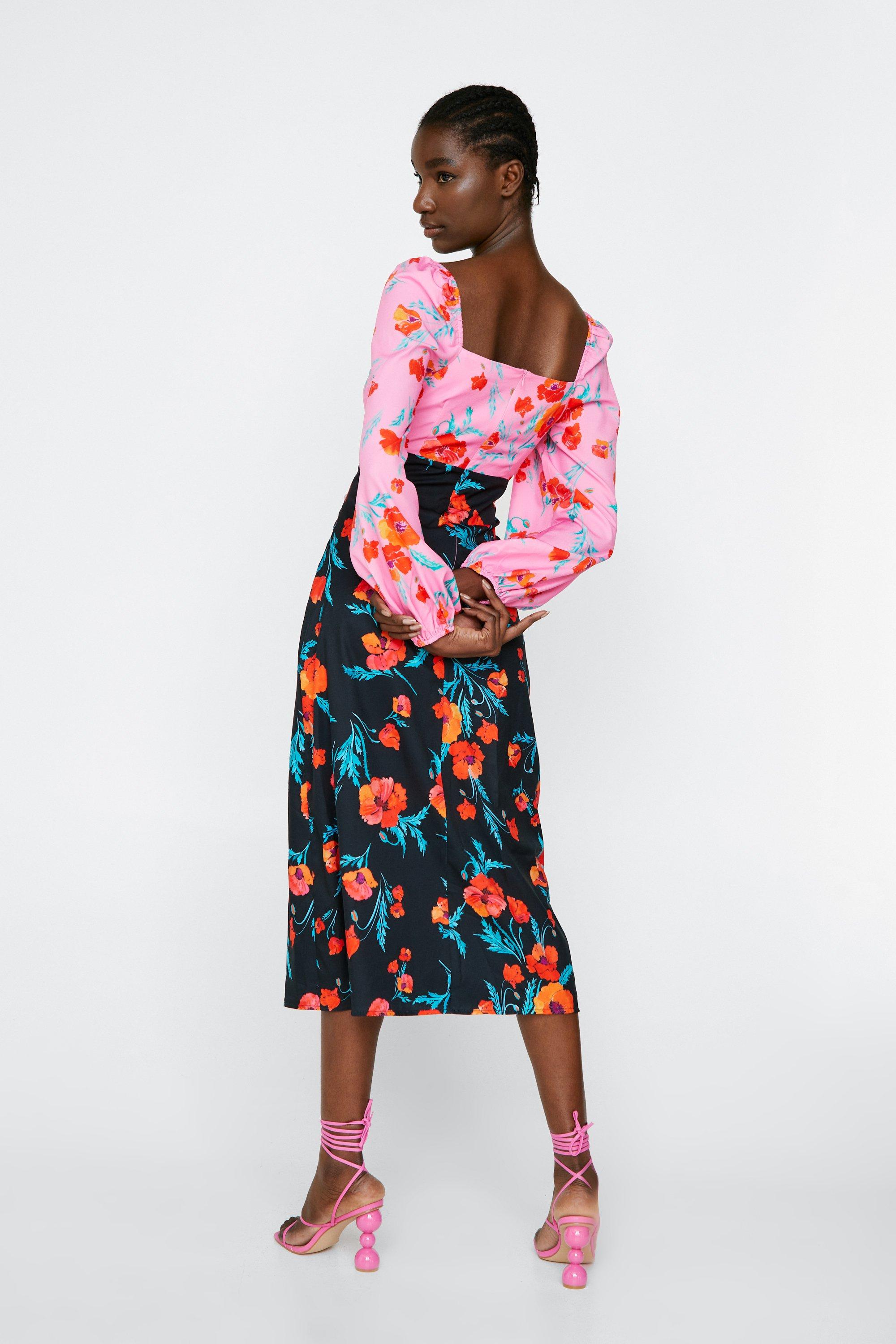 Mix Floral Print Long Sleeve Midi Dress Nasty Gal